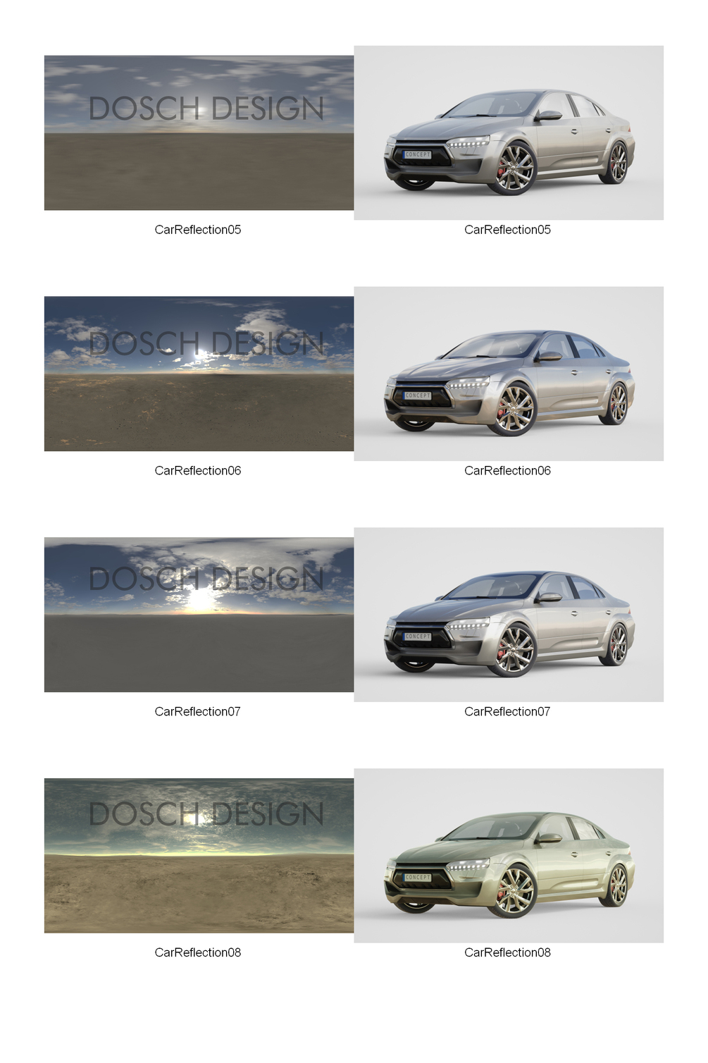 Dosch HDRI: Car Reflections contains 25 HDRIs for perfect reflections on vehicles.